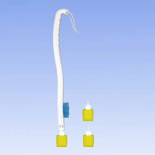 Con una longitud de 68 cm y un peso de 112 g, este cepillo para pies está diseñado para personas con movilidad reducida que desean mantener la higiene de sus pies de manera independiente. Su punta redondeada de espuma permite limpiar entre los dedos y aplicar cremas con facilidad, mientras que el cepillo lateral te brinda una higiene completa de las extremidades inferiores.