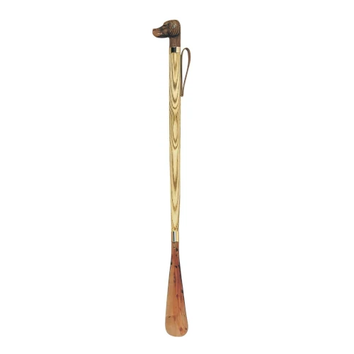 Imagina tener en tus manos un calzador de alta calidad, fabricado en madera de acacia flameada, que no solo te ayuda a calzarte sin esfuerzo, sino que también brinda un toque de elegancia a tu rutina diaria. Con un puño de acetato marrón con forma de perro y una pala de acetato concha, este calzador no solo es funcional, sino que también es una obra de arte que hace que vestirse sea una experiencia placentera.