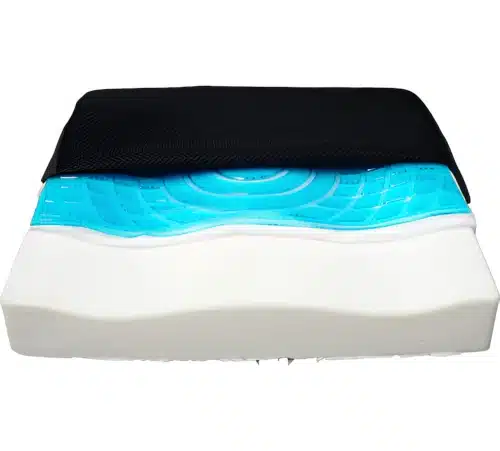 La combinación de gel fluido viscoelástico y espuma asegura el alivio de presión sobre tus áreas óseas, garantizando una postura correcta al sentarte. El diseño del cojín evita el deslizamiento hacia adelante, proporcionando estabilidad y confort en todo momento.