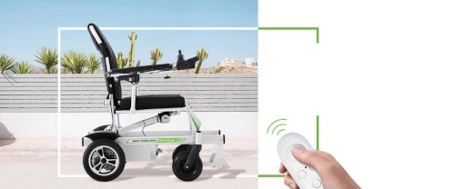 Autonomía total para subir o bajar de su vehículo y plegarla con el mando a distancia. Levantarse de la cama o sentarse en la oficina y apartarla a un lado, traerla hasta usted o plegarla se convierten en acciones totalmente autónomas gracias al mando a distancia que permite moverla desde su ubicación.