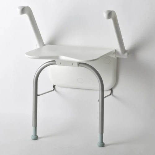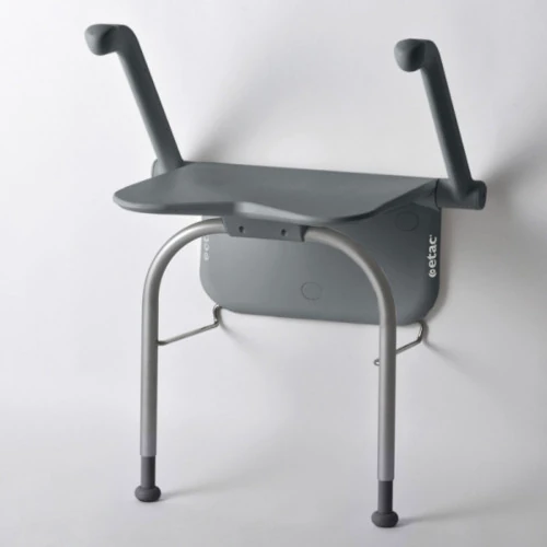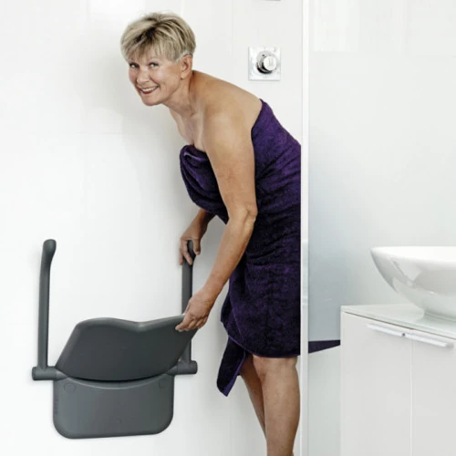 - Estable y discreto: El asiento es amplio, estable y se pliega contra la pared cuando no está en uso.
