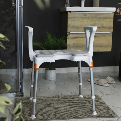 La banqueta con brazos GENOVA asiento en U nace para que tú recuperes la autonomía en cada ducha. Su diseño ergonómico te permite sentarte con confianza y estabilidad, sin depender de nadie. Olvídate de movimientos inseguros y siéntete libre de ajustar tu posición a tu ritmo. Con esta banqueta, recobrarás la tranquilidad y la libertad que mereces en tu cuidado diario.