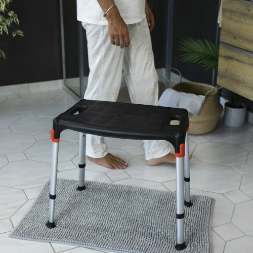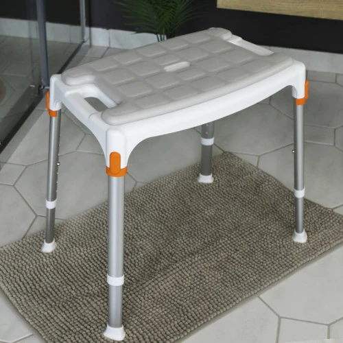Recupera tu autonomía en momentos tan íntimos como el aseo diario. La Banqueta PORTOFINO te ofrece estabilidad y seguridad, resistiendo hasta 120 kg de carga sin renunciar a su ligereza. Gracias a su estructura de aluminio inoxidable, podrás sentirte protegido cada vez que te sientes, sin preocuparte por el óxido ni la corrosión.