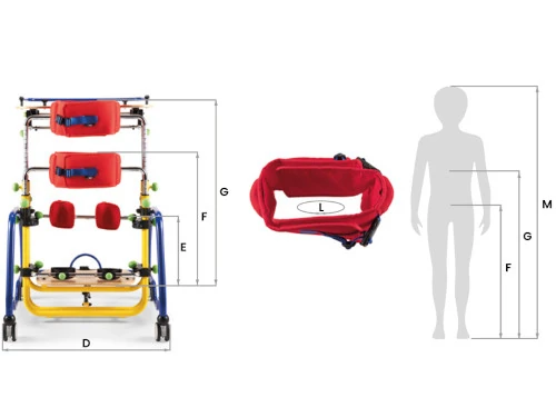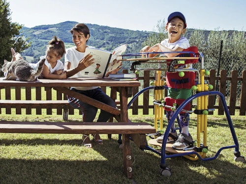 Gracias a sus tres tamaños disponibles y una amplia gama de ajustes, el Bipedestador DONDOLINO se adapta a tu crecimiento, desarrollo de habilidades individuales y necesidades específicas. Su estructura basculante ofrece estabilidad en movimiento, favoreciendo la movilidad de tus miembros superiores y de la cabeza, en línea con tu desarrollo motor. Con este equipo, podrás disfrutar de momentos confortables y seguros en casa, la escuela, la guardería o en cualquier lugar donde desees estar.
