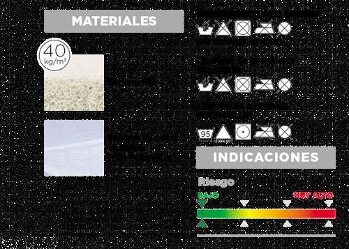 - Espuma de poliuretano HR de 40Kg/m3: garantiza durabilidad y confort al tacto, adaptándose a tu cuerpo.