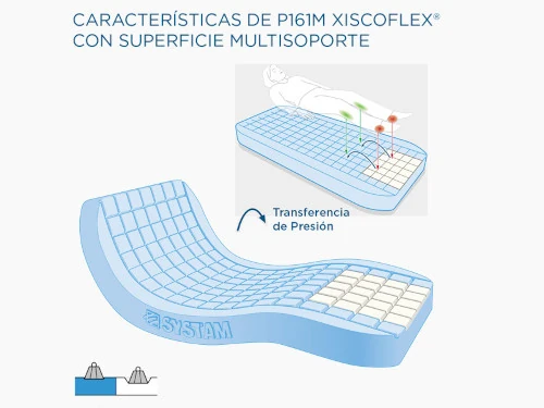 - Superficie multisoporte: previene úlceras al distribuir la presión de manera uniforme.