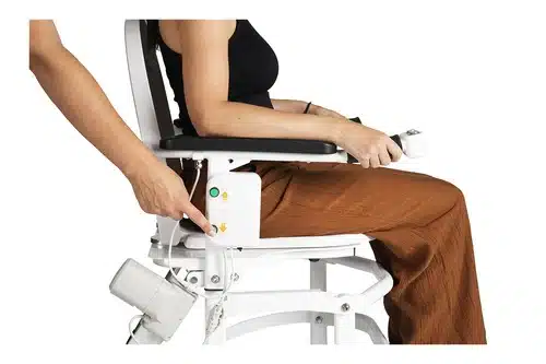 La comodidad es clave en el diseño del Easy Up. Con un ángulo de inclinación de 33º, este elevador permite una transición suave y segura, reduciendo el riesgo de caídas y lesiones. Es como tener un ayudante personal que te acompaña cada vez que vas al baño. Además, su mando de elevación y descenso, ubicado de manera accesible en el reposabrazos, facilita el ajuste a la altura que necesites, haciendo que cada uso sea una experiencia placentera y sin complicaciones.