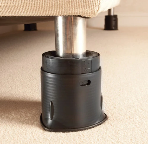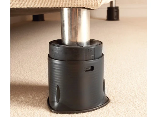 - Fácil de usar: con un simple giro puedes elevar tus muebles de 10 a 17,5 cm y de 4,5 cm a 12,5 cm sobre las patas.