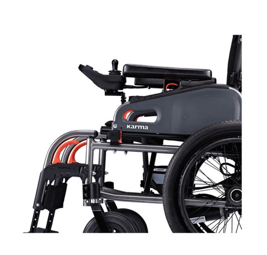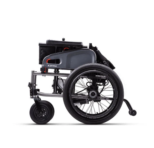 Mayor facilidad de plegado. Más es fácil de usar que muchas otras del mercado. Conducción de forma eléctrica o autopropulsada con los brazos. Manténgase en forma a pesar de pasar muchas horas sentado. La Silla de ruedas eléctrica Karma eFlexx es un vehículo robusto y resistente. Dispone de ruedas grandes y extremas condiciones de accesibilidad. Reposapiés ajustables y reposabrazos abatibles. Dos opciones de baterías. Podrá elegir entre una autonomía de 20km con una batería de 657.7 Wh o una batería de 290Wh con una autonomía de 10km.