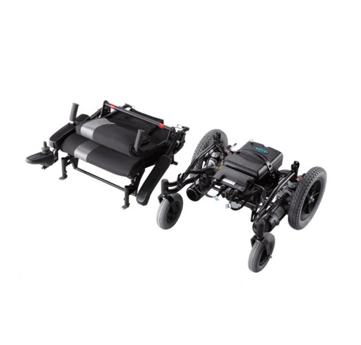 La silla de ruedas eléctrica Ergo Traveller es fácil de desmontar y montar sin necesidad de herramientas. Los reposapiés son totalmente desmontables facilitando el transporte en un maletero. Viajar o guardarla en espacios reducidos es cómodo y sencillo.