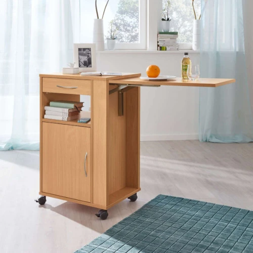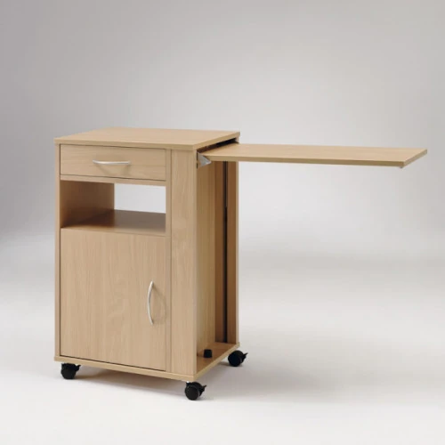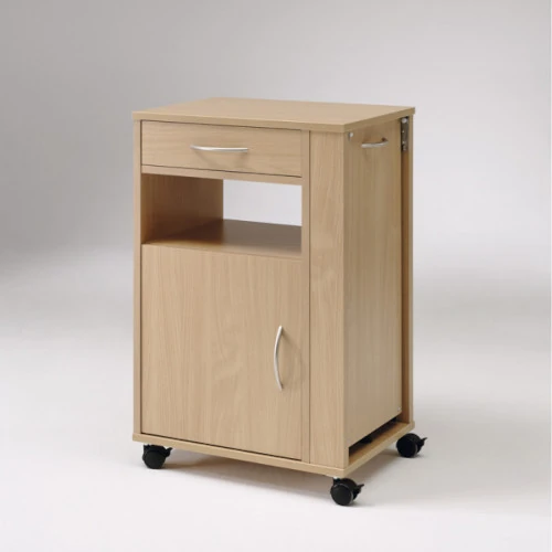 La mesita STELLA es la solución perfecta para quienes buscan comodidad y funcionalidad al alcance de su mano. Diseñada especialmente para facilitar el día a día, su elegante estructura de madera no solo aporta un toque moderno a cualquier habitación, sino que también cuenta con un armario, cajón y una mesita auxiliar abatible, ideal para actividades como comer o leer desde la cama. Con su movilidad garantizada por cuatro ruedas bloqueables, esta mesita te permite tener tus objetos personales siempre a la mano, sin complicaciones. Convierte tu espacio en un lugar más accesible y cómodo.