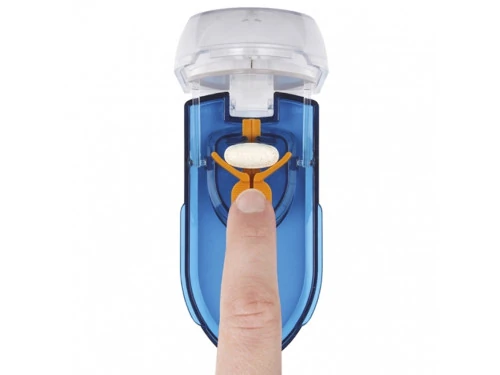 Gracias a un ingenioso mecanismo que centra la pastilla para partirla siempre por la mitad, independientemente de su forma, nunca más tendrás que preocuparte por dosificar correctamente tus medicamentos. Además, su diseño permite almacenar varias pastillas a la vez y acceder a ellas fácilmente, gracias a sus bordes redondeados.