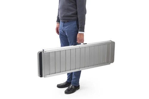¿Necesitas llevar tu rampa contigo a todas partes? ¡No hay problema! La Rampa Sky Libro se pliega con gran facilidad y cuenta con asas integradas para que puedas transportarla cómodamente a donde quieras. Su diseño práctico y ligero la convierte en la opción perfecta para acompañarte en tus aventuras diarias.