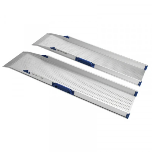 Con un peso de tan solo 3 kg cada una, las rampas RF1200 son la elección perfecta para su uso habitual en un mismo lugar. Su diseño las hace ideales para instalaciones permanentes, ofreciéndote estabilidad y resistencia sin necesidad de mantenimiento constante. Su construcción en aluminio las hace duraderas y ligeras, mientras que su amplia capacidad de carga de hasta 400 kg te brinda la seguridad que necesitas en cada uso.