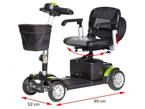 - Asiento giratorio y regulable: Proporciona comodidad en cada viaje y facilita la entrada y salida del scooter.