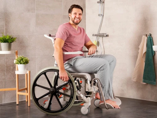 - Ruedas de 600 mm: impulsa fácilmente tu silla, ganando autonomía en el baño.