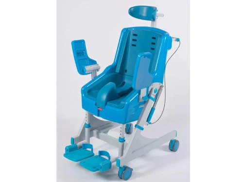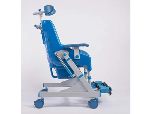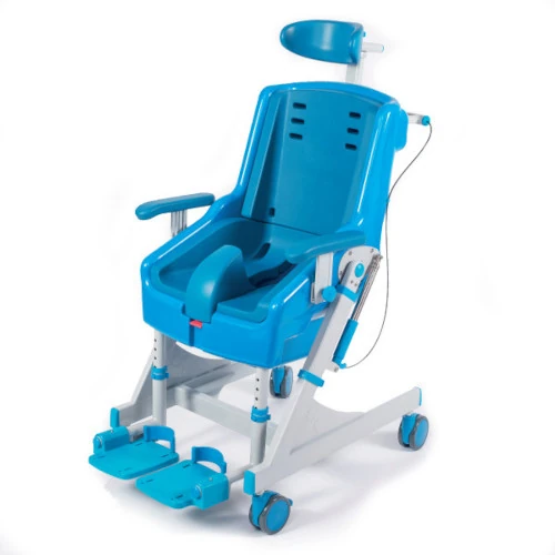 La silla basculante SANICHAIR es una solución avanzada y galardonada para el cuidado diario en la ducha y el WC. Su diseño innovador combina ligereza, estructura inoxidable y facilidad de limpieza, proporcionando máxima seguridad y comodidad al usuario y al cuidador. Gracias a su sistema de basculación asistido por pistones de gas, permite una inclinación de hasta 40°, ajustando fácilmente la posición del usuario con solo presionar un botón. Además, incluye reposacabezas y reposapiés ajustables, cinturón multiajustable, cubeta y taco extraíbles, garantizando una experiencia higiénica, segura y adaptable a cada necesidad.