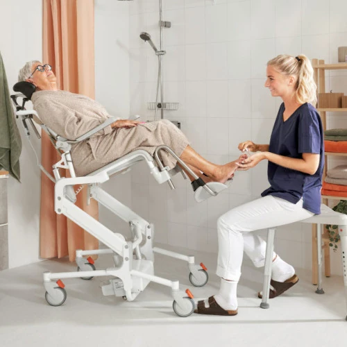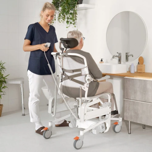 La Silla de baño y WC, basculante y regulable en altura ALTO, es la solución perfecta para garantizar una higiene cómoda y segura. Si eres cuidador o un usuario con movilidad reducida, sabes lo complicado que puede ser el acceso al baño. Esta silla eléctrica, compacta y fácil de maniobrar, se ajusta en altura y basculación con solo apretar un botón, mejorando la experiencia tanto para el usuario como para el cuidador. Ofrece un entorno de confianza y comunicación, transformando la rutina diaria en un momento de dignidad y bienestar para ambos. Con su diseño ergonómico, ALTO proporciona la libertad de mantener el cuidado en el hogar, sin la necesidad de reformas costosas. Disfruta de un baño sin complicaciones y brinda una calidad de vida superior.