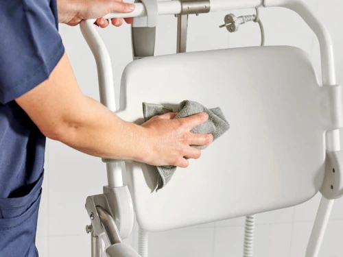 La silla ALTO está diseñada para durar y mantenerse limpia. Soporta hasta 160 kg de peso y pesa solo 40 kg, combinando resistencia y ligereza. Sus superficies antideslizantes y de rápido secado facilitan la desinfección, fundamental en residencias y hospitales.