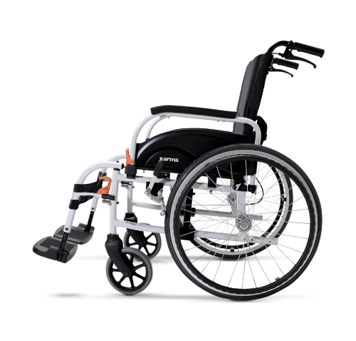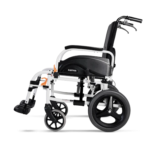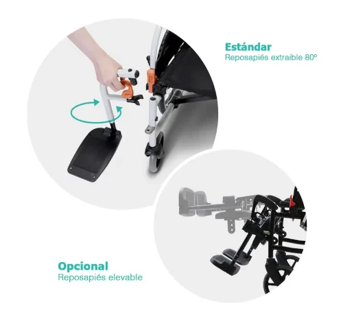 Este modelo es la definición de versatilidad. Su chasis es compatible tanto con ruedas traseras de 14″” como de 24″”, lo que te permite cambiar entre una silla de transporte y una silla de ruedas autopropulsada en cuestión de segundos. La adaptabilidad nunca ha sido tan sencilla.