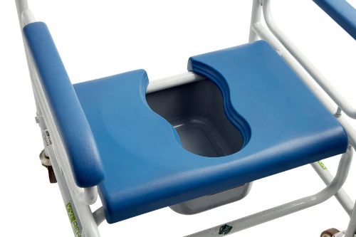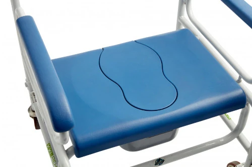 La silla de ducha XL SAMOA cuenta con un asiento inodoro dividido y un orificio abierto que facilita el acceso a los cuidadores y evita posibles incidentes. Los reposabrazos se abaten suavemente para evitar aplastamientos al entrar y salir del inodoro, priorizando tu bienestar en todo momento.