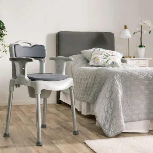 La Silla Multifunción COMODA SWIFT es la solución perfecta para quienes buscan comodidad y versatilidad en su día a día. Si tienes dificultades para acceder al baño o necesitas un inodoro cerca de la cama, esta silla es ideal. Su diseño tres en uno permite usarla como inodoro, silla de ducha o elevador de inodoro, adaptándose a tus necesidades. Con esta silla, sentirás una mayor independencia y tranquilidad, evitando situaciones incómodas y mejorando la calidad de vida. No más preocupaciones por la seguridad en el baño o la falta de accesibilidad