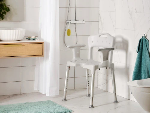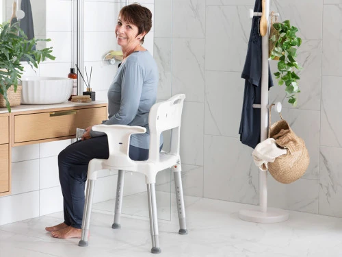 Con la silla de ducha SWIFT recuperas la libertad en tu baño. Gracias a su diseño estable, podrás sentarte y levantarte sin esfuerzo. El asiento ajustable en altura (42 – 57 cm) se adapta a tu estatura y favorece la movilidad. Olvídate de resbalones: el asiento flexible y las conteras suaves se adaptan a suelos irregulares para ofrecerte máxima estabilidad en cada uso.