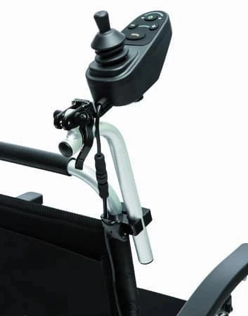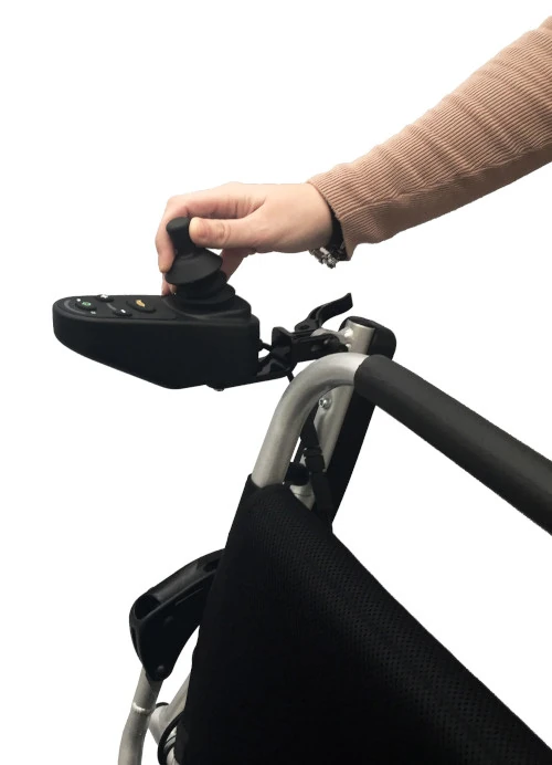Soporte fácil de instalación, se fija al asiento en la barra de empuje y es plegable. Compatible con los modelos OBEA SOROLLA, SOROLLA MINI y SOROLLA315. Incluye receptor inalámbrico que se acopla al mando original. Permiten al acompañante empujar o conducir la silla estando el ocupante sentado de forma segura. Evita esfuerzos y da libertad de movimiento. Con su diseño ergonómico y ajustable permite tener el control al alcance facilitando la navegación y el manejo de tu silla de ruedas.